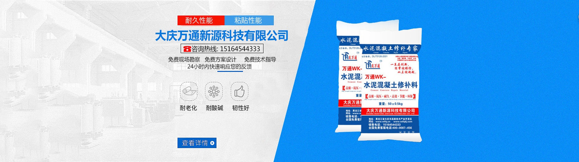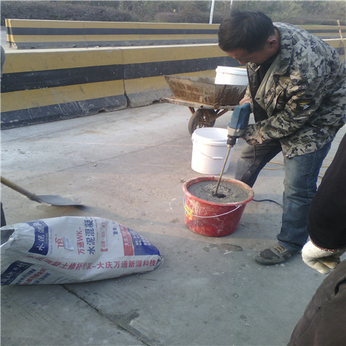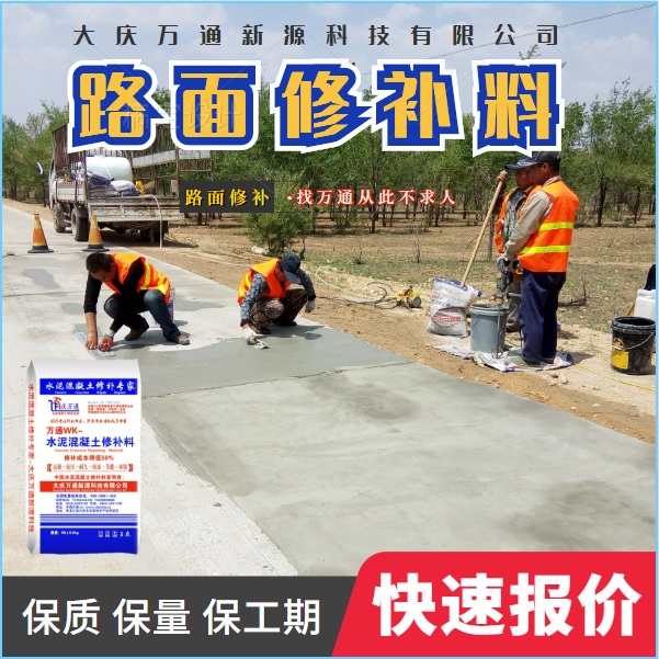 大慶萬通新源科技有限公司獨有的混凝土路面高強速補料,是水泥混凝土路面病害修復的好材料。疲勞、凍融循環(huán)、彎曲壓力、滲水和基層破壞等原因都會引起水泥路面的破損,從而帶來高昂的維護費用。與以往的剛性修補方法不同,混凝土水泥路面維修速補膠提供了一種獨特的柔性修補產(chǎn)品和技術,高柔性、高抗拉性,可跨伸縮縫施工和高抗壓性使得混凝土快補產(chǎn)品為水泥混凝土路面提供了******性的修補。傳統(tǒng)的剛性修補方案,如環(huán)氧砂漿和快干水泥產(chǎn)品,由于其自身的粘結(jié)失效,抗疲勞性低以及與原路面不同的伸縮系數(shù),修補面會在短時間內(nèi)失效或產(chǎn)生新的裂縫,需要反復修補,有效期短且費用高昂。大慶萬通新源科技有限公司的混凝土水泥路面維修速補膠可以隨原路面一起伸縮,移動,從而避免了粘結(jié)失效和產(chǎn)生新裂縫。萬通快補產(chǎn)品優(yōu)異的粘結(jié)性、柔韌性和高防滑性,特別適用于水泥路面的淺層粘合修補,多邊角混凝土板層修補,跨伸縮縫修補以及路面沉陷修補。萬通混凝土病害修補料針對混凝土起皮起沙、斷板裂縫、蜂窩麻面、坑槽露石子、漏筋掉皮、橋梁的掉皮漏筋快速通車使用時間長。應用萬通快補產(chǎn)品,施工后一天就可以恢復交通。大慶萬通新源科技有限公司的萬通水泥路面維修速補膠適用于高速公路、機場路面、農(nóng)村村村通路面、廠坪、學校操場、市區(qū)公路、小區(qū)路面、橋梁、水泥路面的修補。使用萬通特快補材料修補路面可以一勞永逸! 水泥地面起砂怎么辦,混凝土修補劑混凝土地面起砂,混凝土地面修補,地面起砂怎么辦,